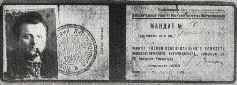 Gottwaldova průkazka Kominterny